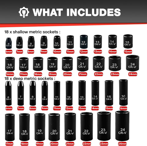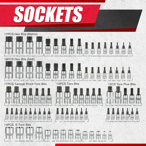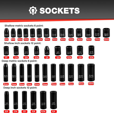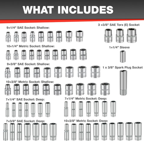 122Pcs 1/4" & 3/8” Drive Impact Socket Set