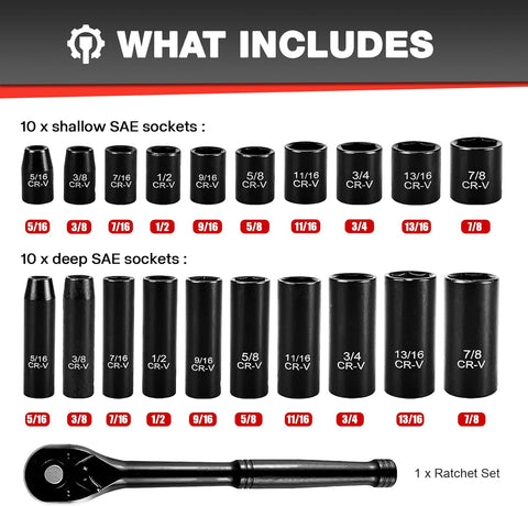 33Pcs 1/2" Impact Socket Set (8-22Mm)