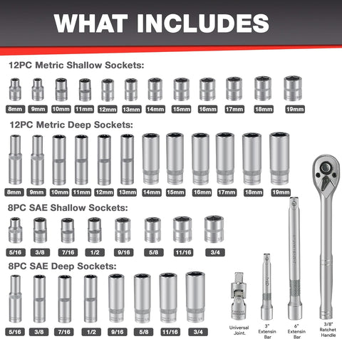 44Pcs 3/8" Drive Impact Socket Set
