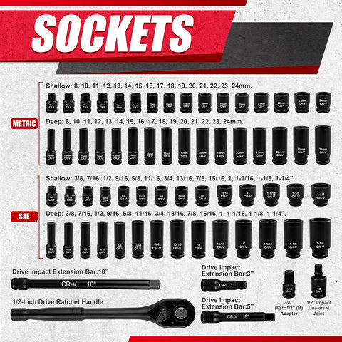 75Pcs 1/4" Drive Impact Socket Set